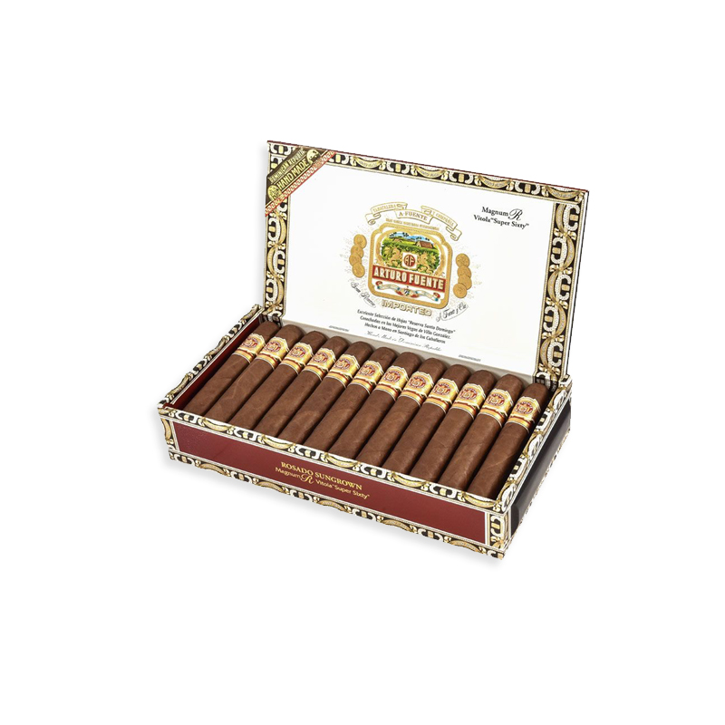 Arturo Fuente Rosado #60 features the finest quality all-Dominican filler & binder from the Dominican Republic. The same is hand-rolled in an exclusive Ecuadorian Rosado Sun grown wrapper leaf for an intensely palatable, medium bodied smoke. Offering billows of thick, flavorful smoke with each puff, this puro consists of heady notes of sweet spice, leather, cedar, with undertones of pepper and cream.