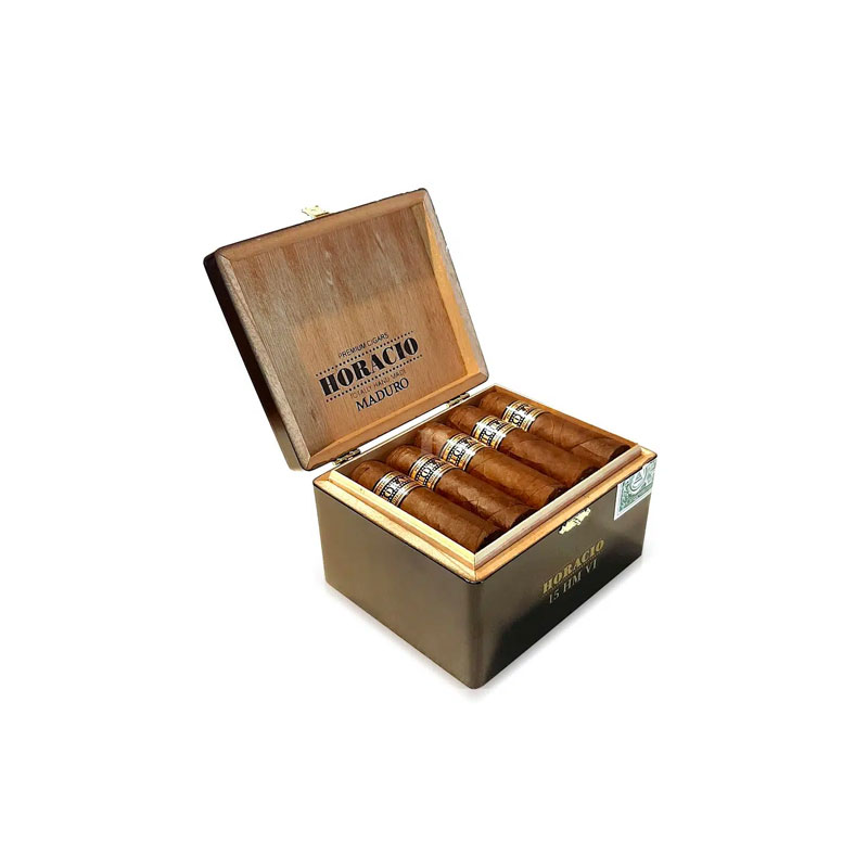 This number 6 of the Horacio brand impresses by its size: 2.62 cm in diameter for 10 cm long. Wrapped in a perfectly stretched dark wrapper, it releases raw scents of leather and black pepper. The lighting is done without surprise, the puffs are very generous and fill the palate with woody and spicy notes. From the 2nd third, a beautiful smoothness will come to accompany the tasting. An extraordinary module which will delight the amateurs of full-bodied and satiating cigars.This fresh cigar, with a complex and greedy aromatic profile, is perfectly suitable for an afternoon tasting or after a meal.